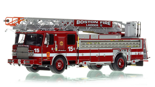 The museum grade line of replicas for Boston continues with Ladder 15, an E-One 100' Cyclone II Rear Mount Aerial. Add this beautiful Boston ladder to your collection today!