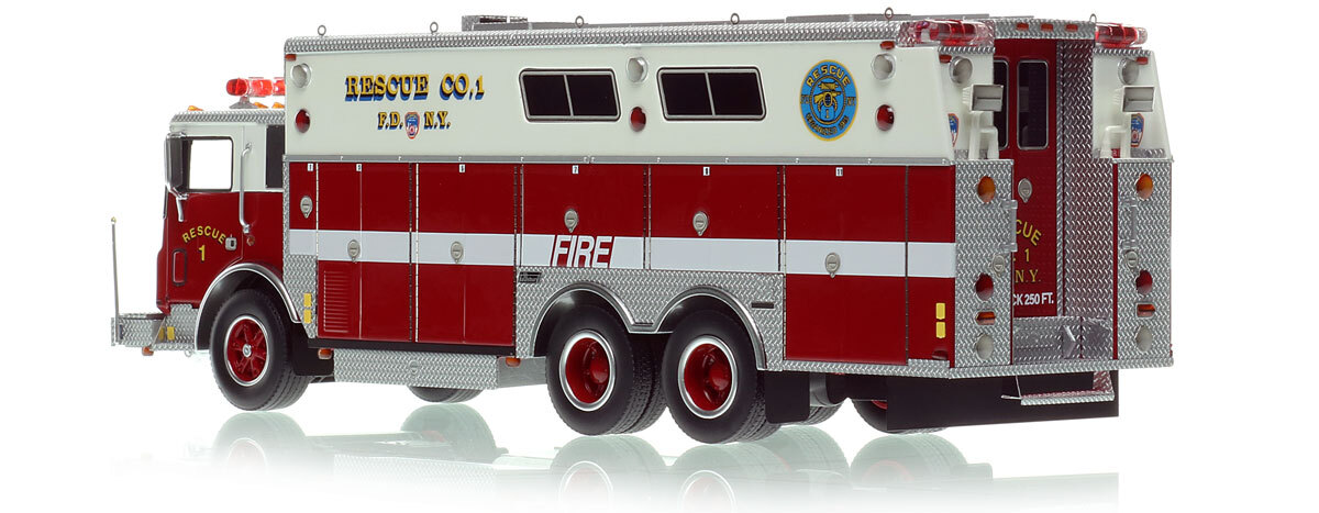 - Graphics/Configuration: Authentic to FDNY's 1985 Mack MC Rescue 1