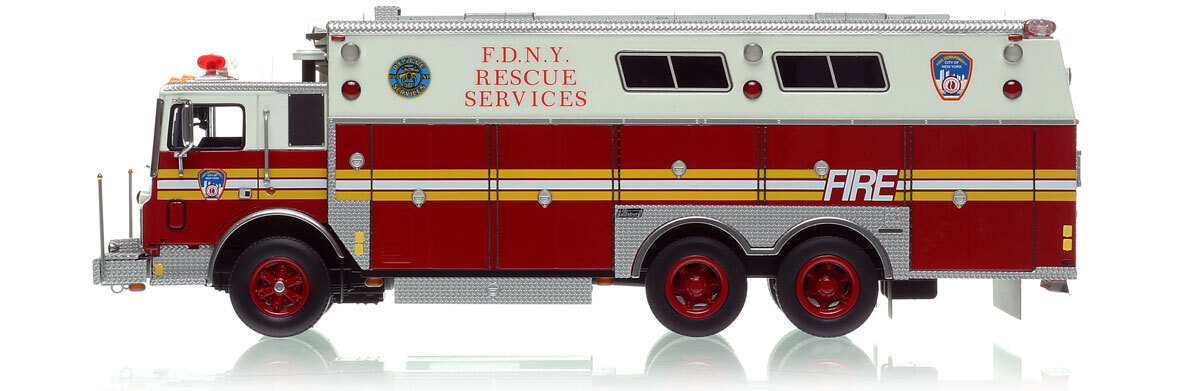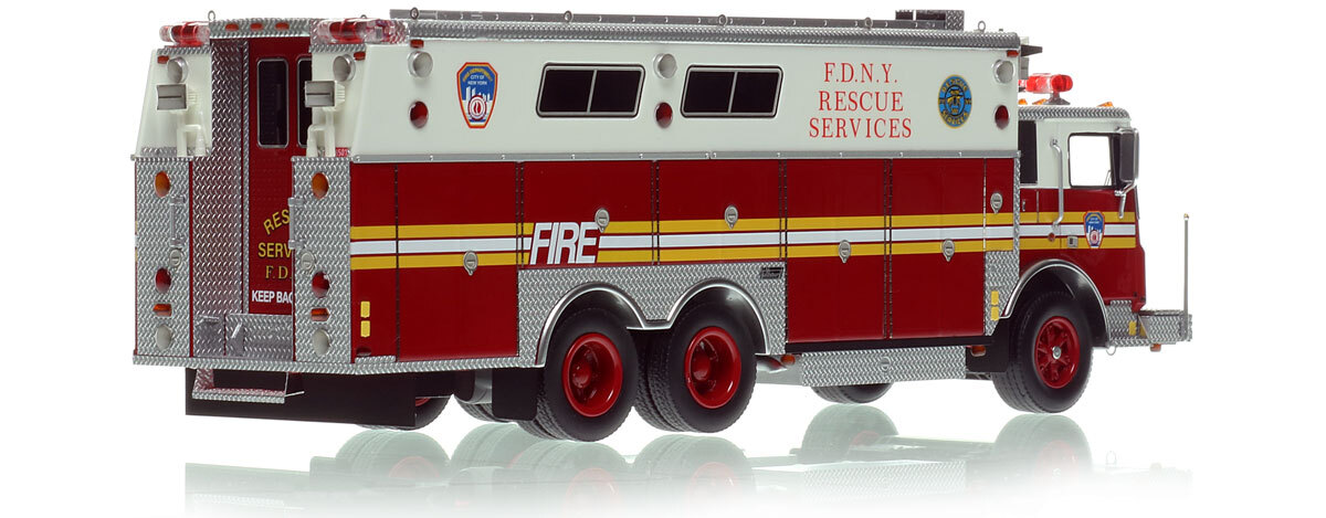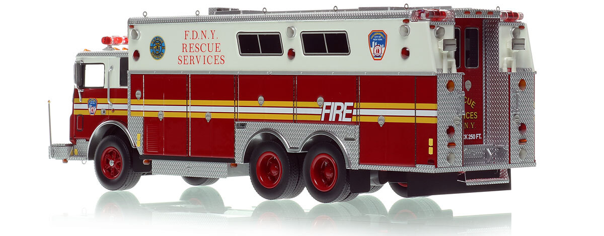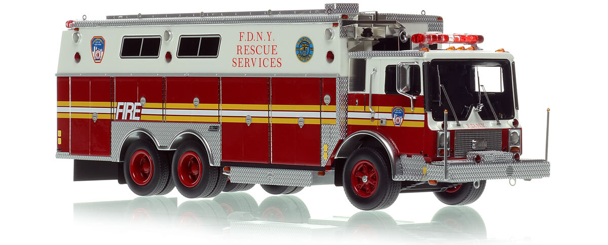 - Graphics/Configuration: Authentic to FDNY's 1985 Mack MC Rescue Services EX R1