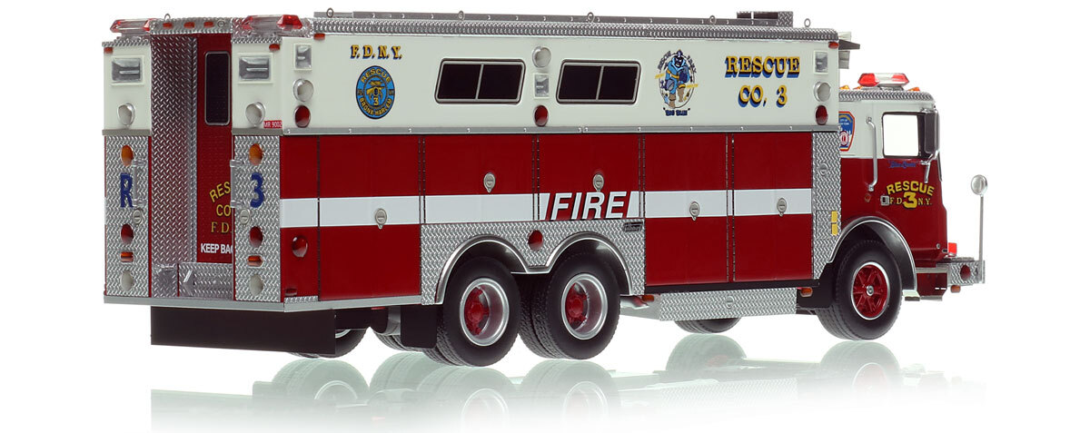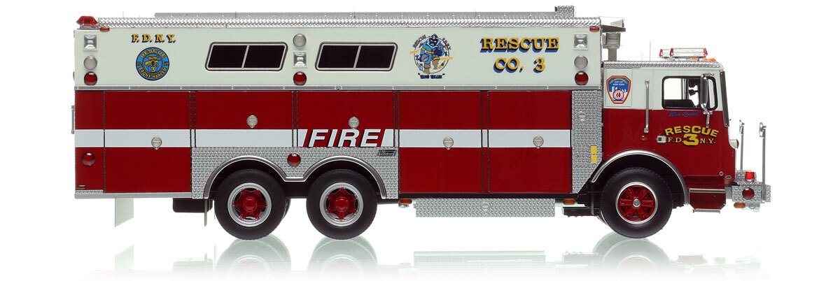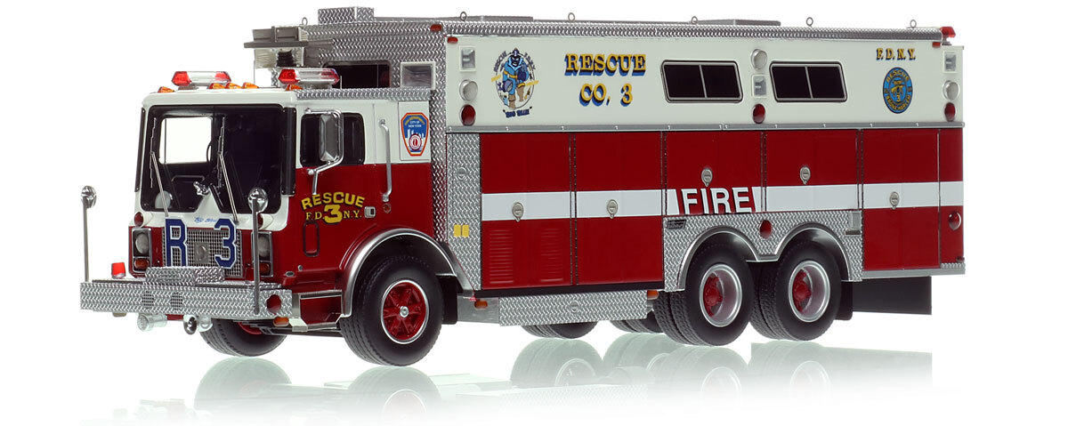 - Graphics/Configuration: Authentic to FDNY's 1988 Mack MC Rescue 3