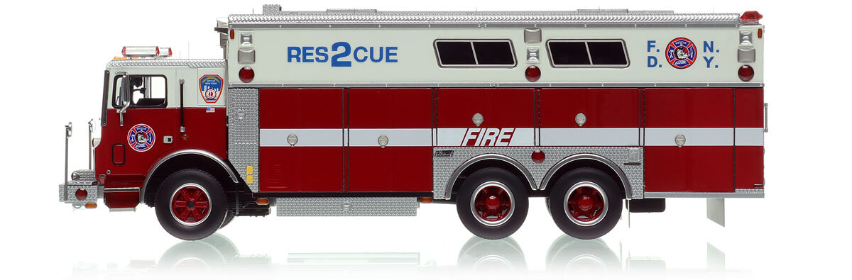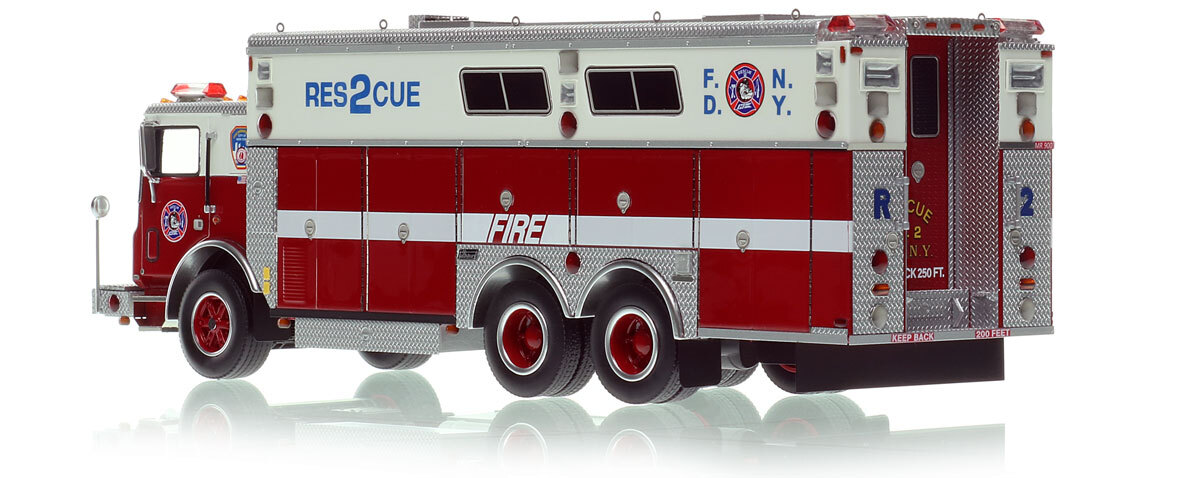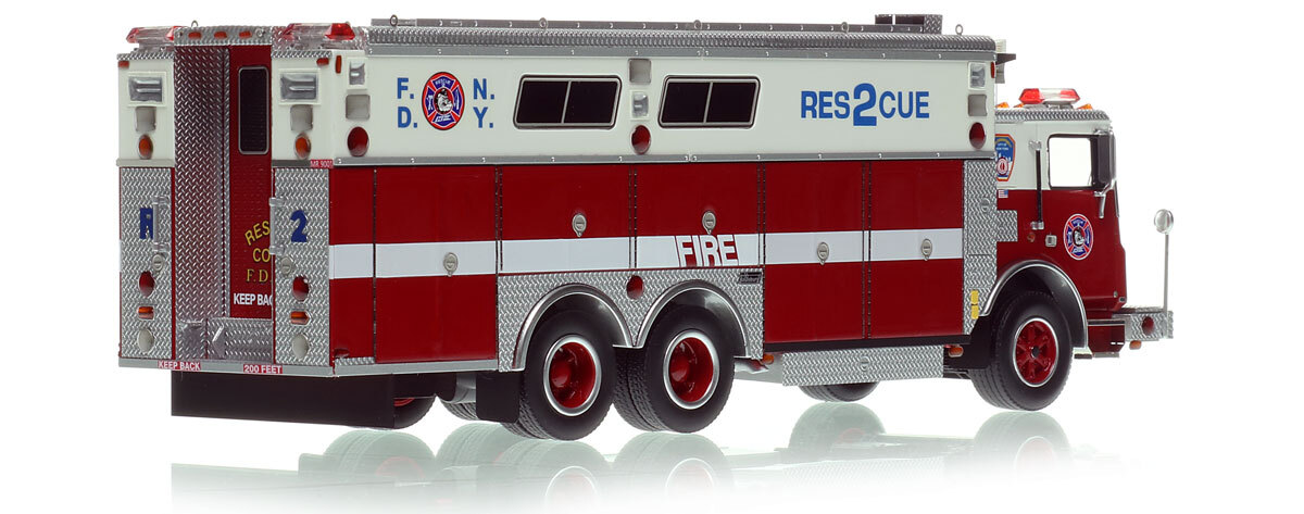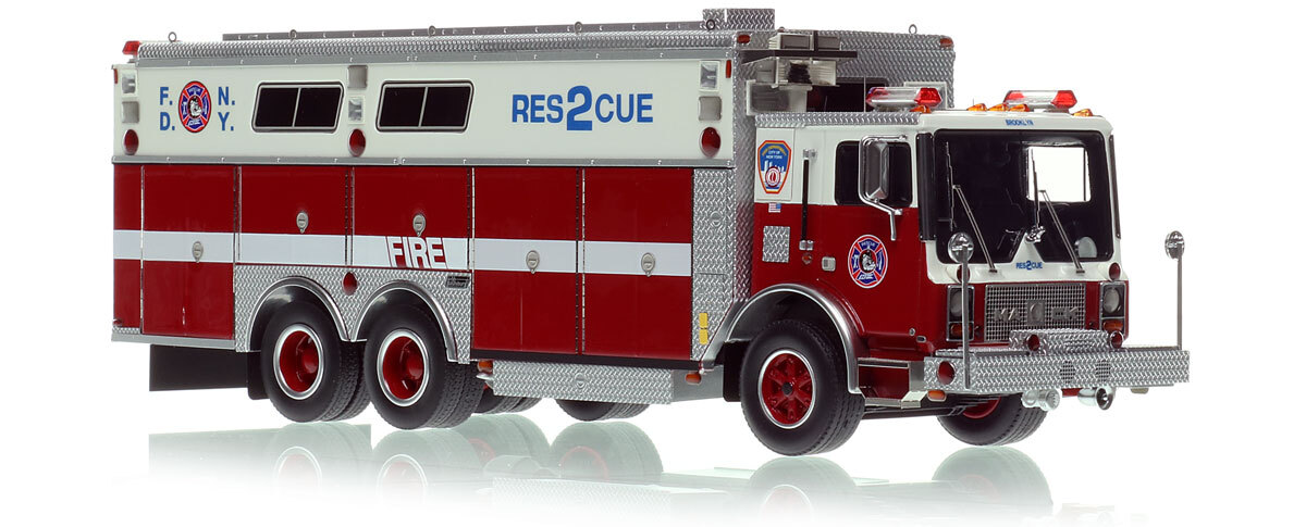 - Graphics/Configuration: Authentic to FDNY's 1990 Mack MC Rescue 2