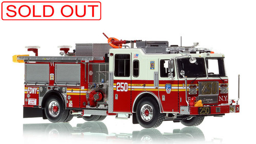 The newest addition to the museum grade fleet of FDNY pumpers is Engine 250, a 2020 Seagrave Attacker HD Pumper. Don't miss your chance to add this precisely detailed rig to your collection.